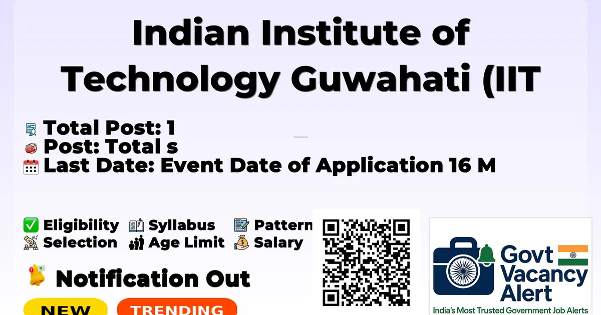 Indian Institute of Technology Guwahati (IIT Guwahati) Recruitment 2026: Indian Institute of Technology Guwahati has released the official notification for 1 Project Research Scientist VI posts, inviting applications from eligible candidates in Assam. This recruitment provides an excellent opportunity for candidates seeking stable and well-paid government jobs.