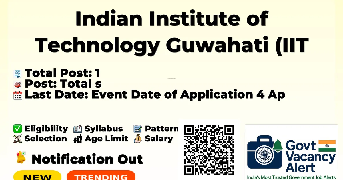 Indian Institute of Technology Guwahati (IIT Guwahati) has released an official notification for the recruitment of 1 Post Doctoral Fellow Posts. Interested and eligible candidates can apply Online through the official IIT Guwahati website. The last date to submit the application form is 04-04-2026.