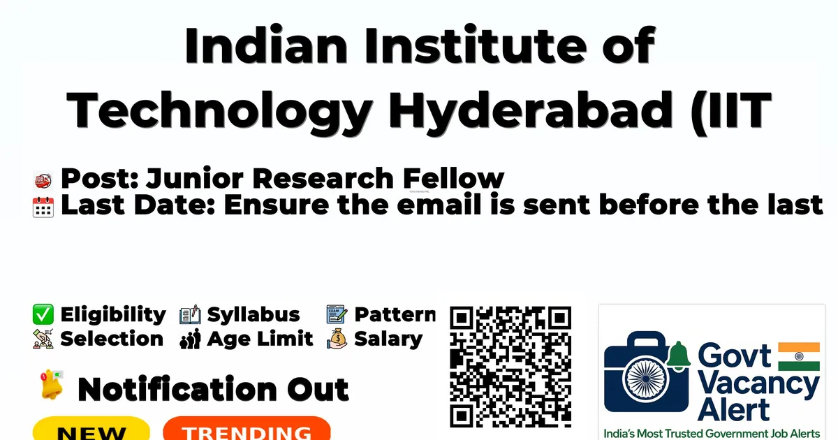 Indian Institute of Technology Hyderabad (IIT Hyderabad) has officially released a notification for the recruitment of Junior Research Fellow Posts. This recruitment drive offers a great opportunity for candidates looking for research jobs. Interested and eligible candidates can apply by sending their resume and documents to the official email address.