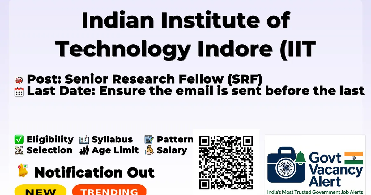 Company Name Indian Institute of Technology Indore (IIT Indore) Post Name Senior Research Fellow (SRF) Salary 42,000 +18% HRA Qualification B.E/B.Tech/M.E/M.Tech/P.Hd. Last Date 27 March 2026 Apply Mode Email Job Type Project-based
