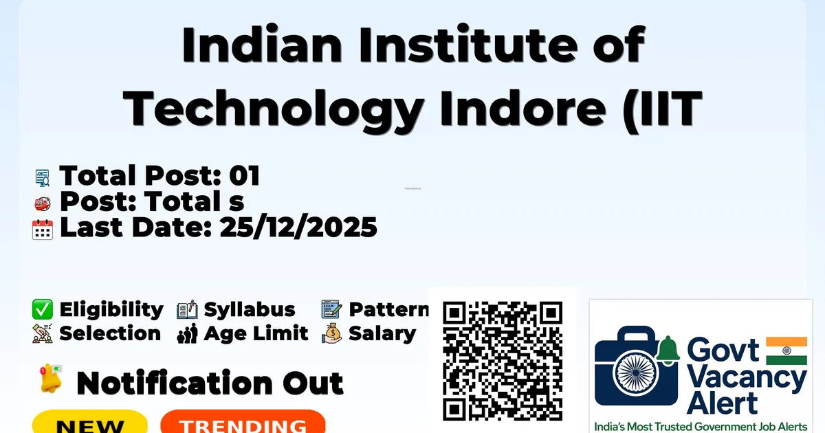 Indian Institute of Technology Indore (IIT Indore) has released an official notification for the recruitment of 01 Junior Research Fellow Posts. Interested and eligible candidates can apply Offline through the official IIT Indore website. The last date to submit the application form is 25-12-2025. In this article, you’ll find the IIT Indore Junior Research Fellow Posts recruitment details, including eligibility criteria, age limit, salary structure, selection process, application steps, and direct links to the official notification and Offline application form.
