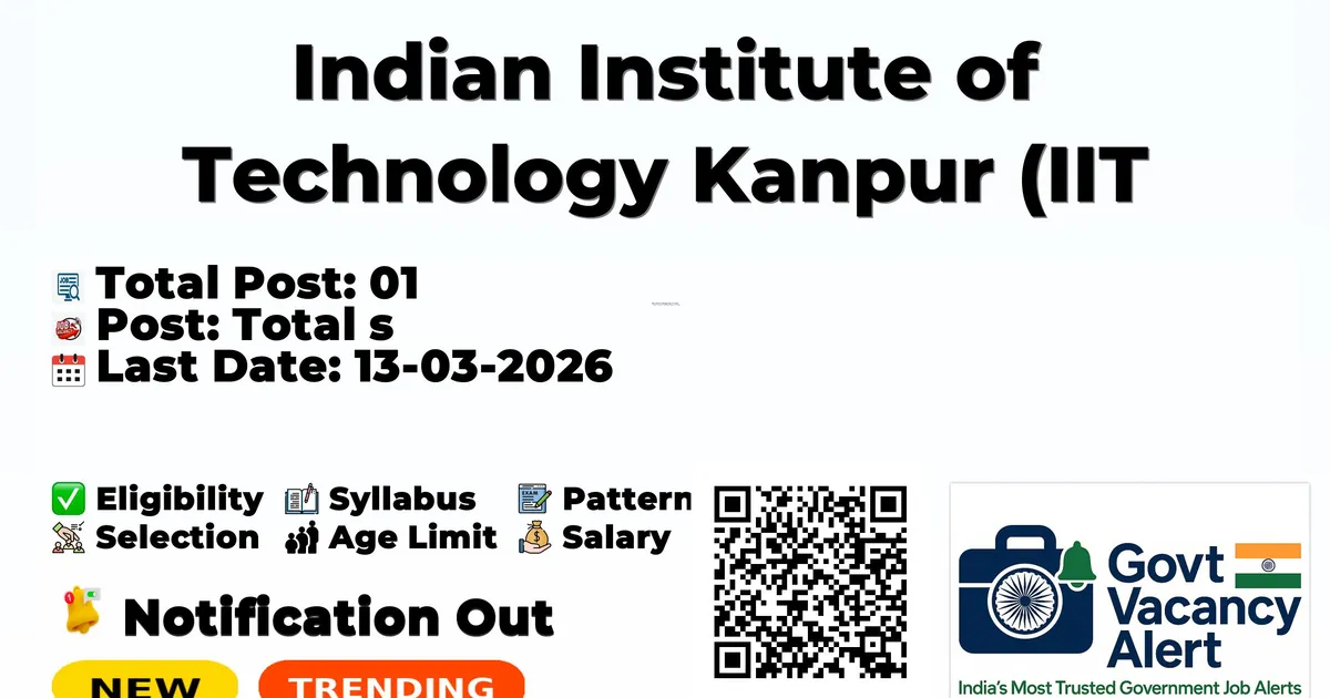 Indian Institute of Technology Kanpur (IIT Kanpur) has released an official notification for the recruitment of 01 Deputy Project Manager Posts. Interested and eligible candidates can apply Online through the official IIT Kanpur website. The last date to submit the application form is 13-03-2026. In this article, you’ll find the IIT Kanpur Deputy Project Manager Posts recruitment details, including eligibility criteria, age limit, salary structure, selection process, application steps, and direct links to the official notification and Online application form.