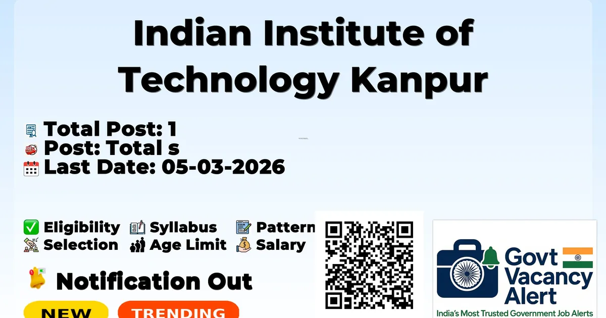Indian Institute of Technology Kanpur (IIT Kanpur) has released an official notification for the recruitment of 01 Project Manager Posts. Interested and eligible candidates can apply Offline through the official IIT Kanpur website. The last date to submit the application form is 05-03-2026. In this article, you’ll find the IIT Kanpur Project Manager Posts recruitment details, including eligibility criteria, age limit, salary structure, selection process, application steps, and direct links to the official notification and Offline application form.