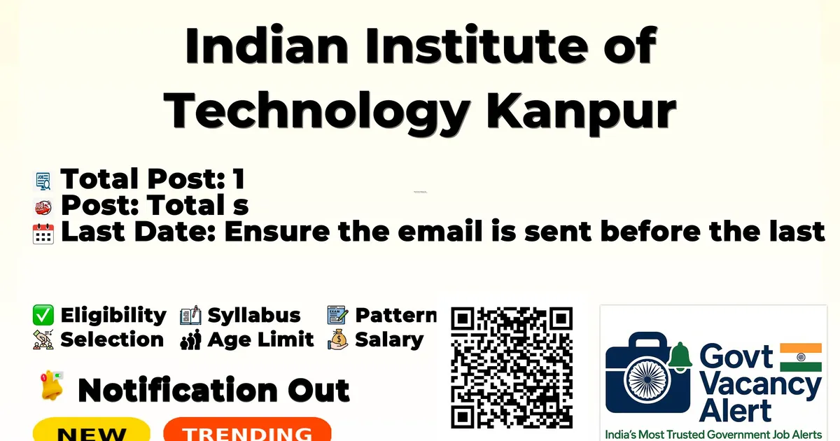 Indian Institute of Technology Kanpur (IIT Kanpur) Recruitment 2026: Indian Institute of Technology Kanpur has released the official notification for 1 Assistant Project Manager posts, inviting applications from eligible candidates. This recruitment provides an excellent opportunity for candidates seeking government jobs.