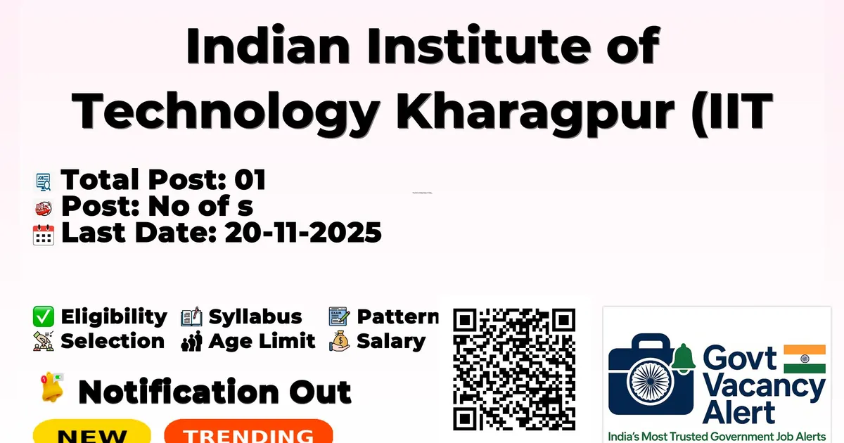 Indian Institute of Technology Kharagpur (IIT Kharagpur) has released an official notification for the recruitment of 01 Senior Project Assistant Posts. Interested and eligible candidates can apply Offline through the official IIT Kharagpur website. The last date to submit the application form is 20-11-2025. In this article, you’ll find the IIT Kharagpur Senior Project Assistant Posts recruitment details, including eligibility criteria, age limit, salary structure, selection process, application steps, and direct links to the official notification and Offline application form.