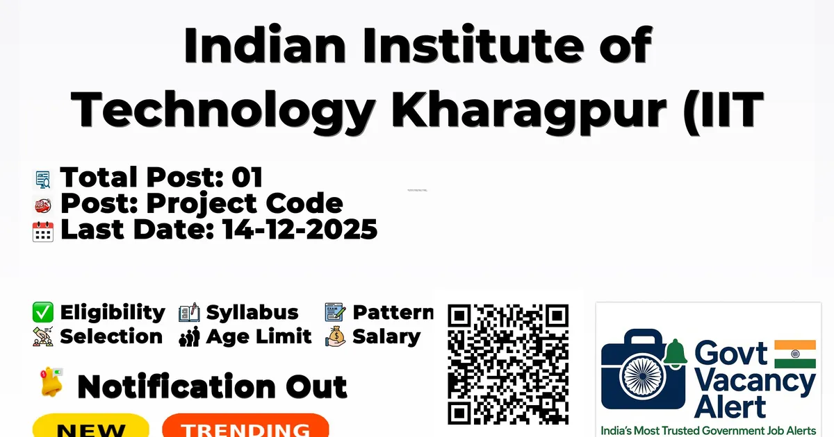 Indian Institute of Technology Kharagpur (IIT Kharagpur) has released an official notification for the recruitment of 01 Project Scientist Posts. Interested and eligible candidates can apply Online through the official IIT Kharagpur website. The last date to submit the application form is 14-12-2025. In this article, you’ll find the IIT Kharagpur Project Scientist Posts recruitment details, including eligibility criteria, age limit, salary structure, selection process, application steps, and direct links to the official notification and Online application form.