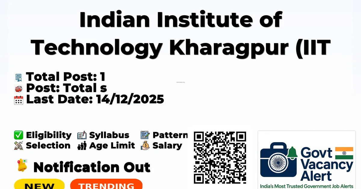 Indian Institute of Technology Kharagpur (IIT Kharagpur) has released an official notification for the recruitment of 01 Project Scientist Posts. Interested and eligible candidates can apply Online through the official IIT Kharagpur website. The last date to submit the application form is 14-12-2025. In this article, you’ll find the IIT Kharagpur Project Scientist Posts recruitment details, including eligibility criteria, age limit, salary structure, selection process, application steps, and direct links to the official notification and Online application form.
