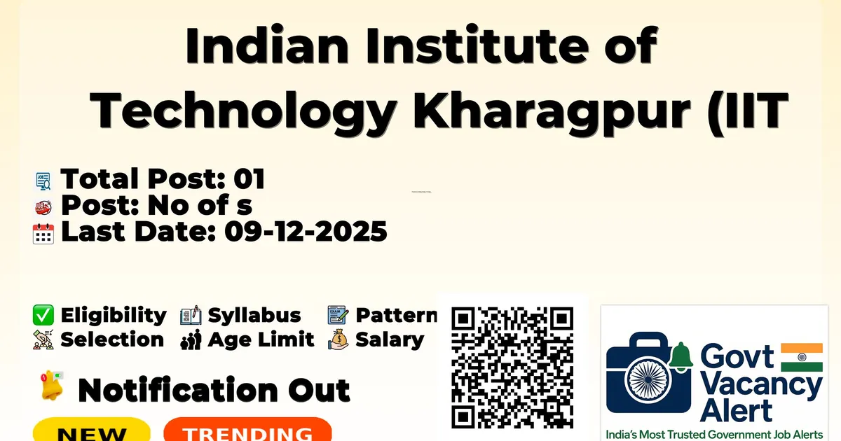 Company Name Indian Institute of Technology Kharagpur (IIT Kharagpur) Post Name Project Manager No of Posts 01 Salary Upto Rs.110000 Qualification M.Sc, M.E/M.Tech Age Limit 40 years Last Date for Apply Online 09-12-2025 Official Website iitkgp.ac.in