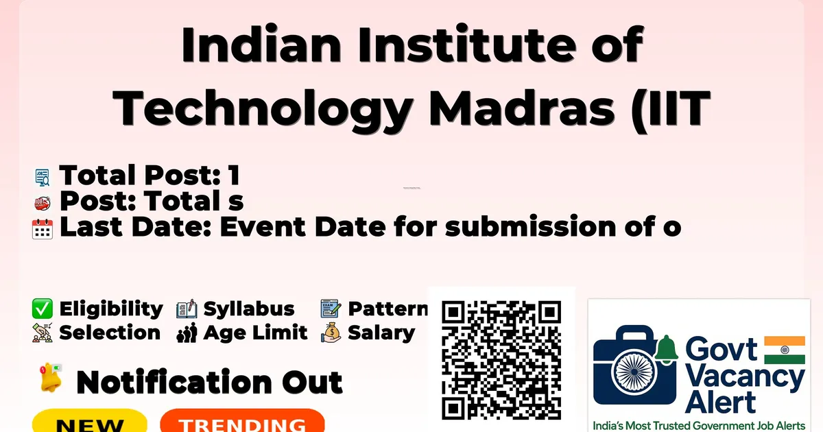Indian Institute of Technology Madras (IIT Madras) Legal Consultant Notification 2026 has been released on the official website of Indian Institute of Technology Madras. A total of 1 vacancy has been announced through the IIT Madras Legal Consultant Recruitment 2026.