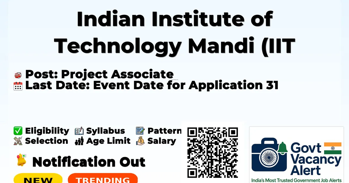Indian Institute of Technology Mandi (IIT Mandi) has released an official notification for the recruitment Project Associate Posts. Interested and eligible candidates can apply by sending their application via Email. The last date to send the application email is 31-03-2026.