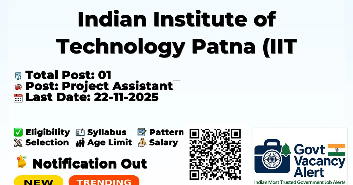 Indian Institute of Technology Patna (IIT Patna) has released an official notification for the recruitment of 01 Project Assistant Posts. Interested and eligible candidates can apply Offline through the official IIT Patna website. The last date to submit the application form is 22-11-2025. In this article, you’ll find the IIT Patna Project Assistant Posts recruitment details, including eligibility criteria, age limit, salary structure, selection process, application steps, and direct links to the official notification and Offline application form.