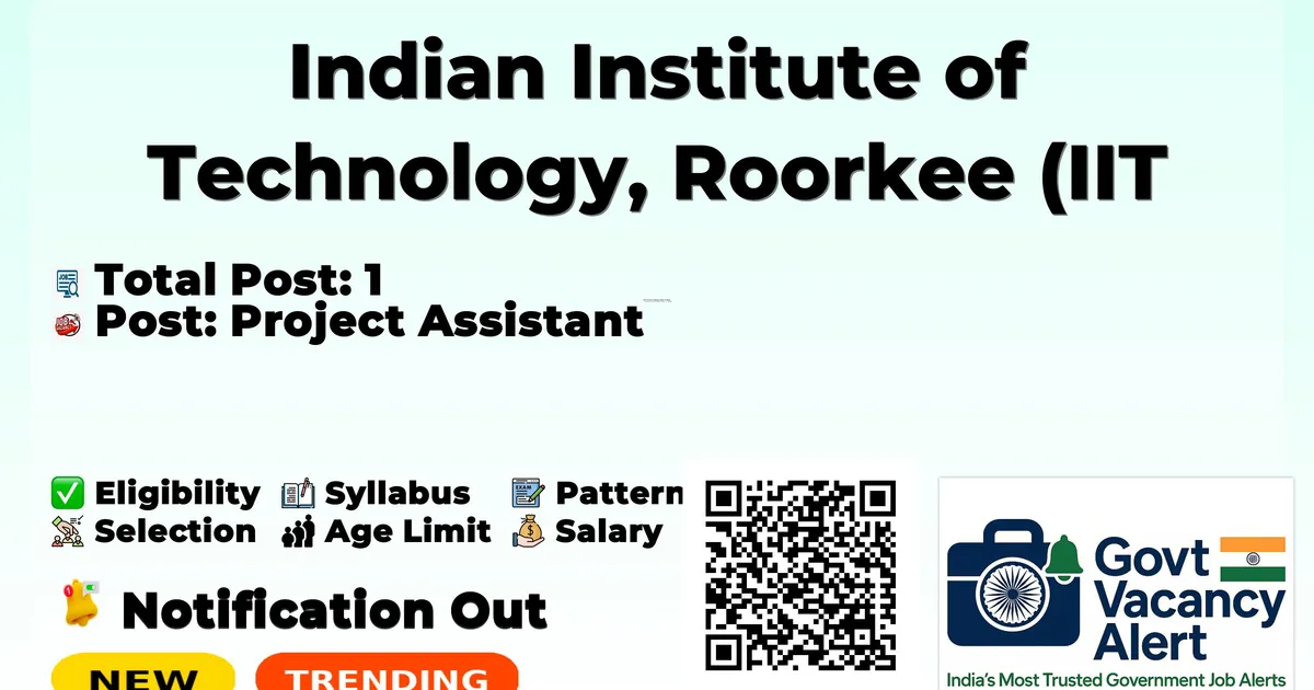 Indian Institute of Technology Roorkee (IIT Roorkee) Recruitment 2026 for 01 posts of Project Assistant. Candidates with B.Tech/B.E, Diploma Can attend the walkin. The Walk-in on 19-01-2026. For detailed information please visit IIT Roorkee official website, iitr.ac.in.