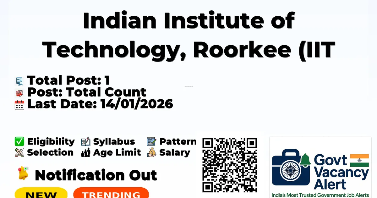 Indian Institute of Technology Roorkee (IIT Roorkee) has released an official notification for the recruitment of 01 Research Associate Posts. Interested and eligible candidates can apply Offline through the official IIT Roorkee website. The last date to submit the application form is 14 -01-2026. In this article, you’ll find the IIT Roorkee Research Associate Posts recruitment details, including eligibility criteria, age limit, salary structure, selection process, application steps, and direct links to the official notification and Offline application form.