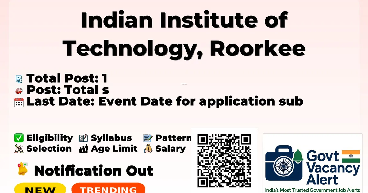 Indian Institute of Technology, Roorkee (IIT Roorkee) has released an official notification for the recruitment of 1 Research Associate Posts. Interested and eligible candidates can apply by sending their application via Email. The last date to send the application email is 20-03-2026.