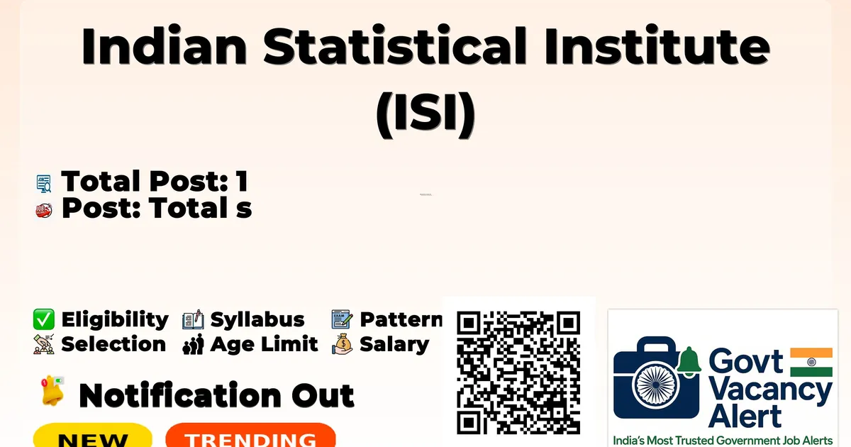 Company Name Indian Statistical Institute (ISI) Post Name Project linked Research Engineer No of Posts 1 Advt No PU/507/ADV/284 Salary ₹25,000/- to ₹35,000/- per month Qualification B.Tech./ B.E./ M.Sc./ M.Tech./ MCA/ Ph.D. in Computer Science/ Information Technology/ Electronics and Communication Engineering/ Electrical Engineering/ Mathematics/ Statistics or equivalent. Age Limit Not exceeding 35 years as on 10 April 2026. Relaxation applicable. Last Date N/A (Walk-in) Walk-in Date 10 April 2026 Apply Mode Walk-in Job Type Project-based