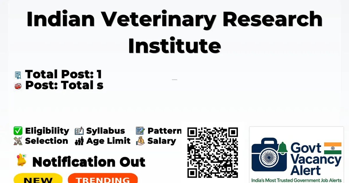 Company Name Indian Veterinary Research Institute Post Name Young Professional No of Posts 1 Salary Rs. 30,000/- Per Month Qualification Graduate in life sciences Or Diploma. Age Limit Min: 21 years, Max: 45 years Walk-in Date 19 March 2026 Apply Mode Walk-in Job Type Contract