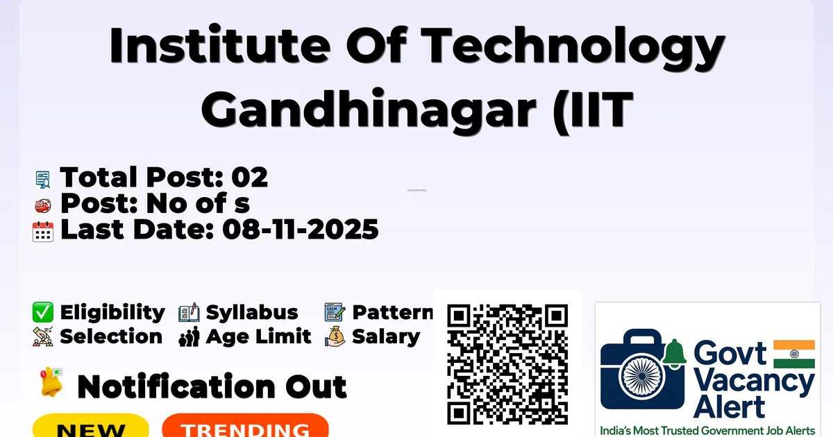 Institute Of Technology Gandhinagar (IIT Gandhinagar) has released an official notification for the recruitment of 02 Program Associate, Program Assistant Posts. Interested and eligible candidates can apply Online through the official IIT Gandhinagar website. The last date to submit the application form is 08-11-2025. In this article, you’ll find the IIT Gandhinagar Program Associate, Program Assistant Posts recruitment details, including eligibility criteria, age limit, salary structure, selection process, application steps, and direct links to the official notification and Online application form.