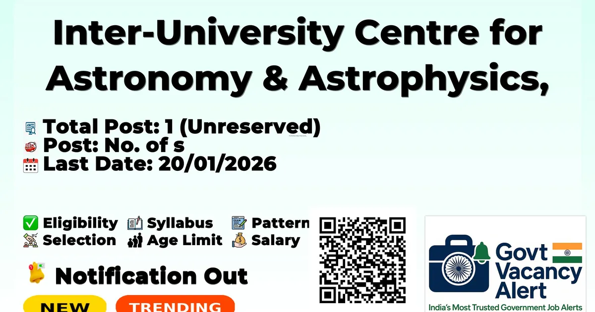 Inter-University Centre for Astronomy and Astrophysics (IUCAA) has released an official notification for the recruitment of 01 Senior Administrative Assistant Posts. Interested and eligible candidates can apply Online through the official IUCAA website. The last date to submit the application form is 20-01-2026. In this article, you’ll find the IUCAA Senior Administrative Assistant Posts recruitment details, including eligibility criteria, age limit, salary structure, selection process, application steps, and direct links to the official notification and Online application form.