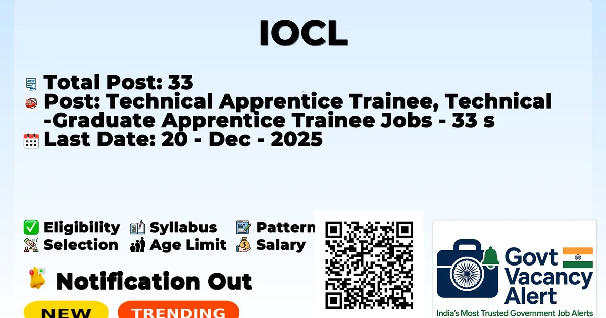 IOCL — Technical Apprentice Trainee, Technical Graduate Apprentice Trainee Jobs - 33 Posts