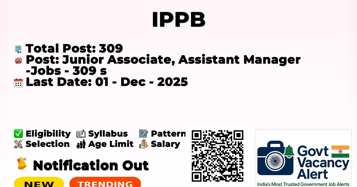 The Indian Post Payments Bank (IPPB) has officially released the notification to fill the vacancies of 309 Junior Associates, Assistant Manager Jobs. Interested and eligibile candidates can use this opportunity to apply for these posts before the last date of application. Candidates who have completed their Any Degree can apply for the IPPB Recruitment 2025. The interested applicants can apply in online mode. Here we have mentioned the education details, age limit, selection process, application fee, salary, and how to apply for these posts before the deadline. The application dates have already begun.
