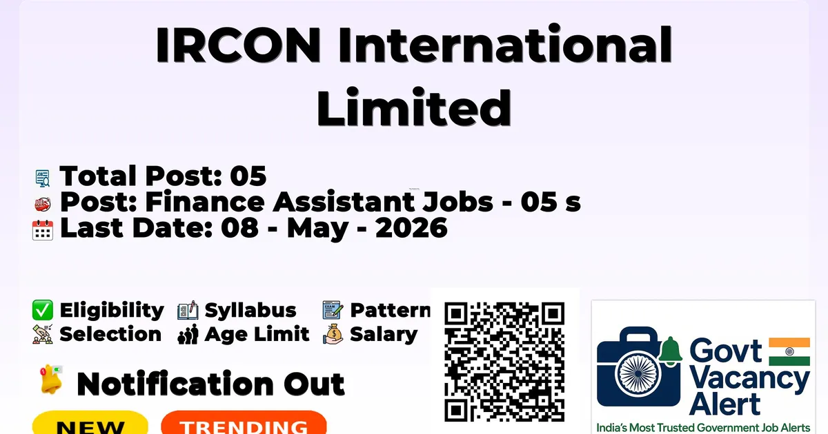 The IRCON International Limited (IRCON) has officially released the notification to fill the vacancies of 05 Finance Assistant Posts. Interested and eligibile candidates can use this opportunity to apply for these posts before the last date of application. Candidates who have completed their Any Degree, Post-graduation, or CA can apply for the IRCON Notification 2026. The interested applicants can apply in offline mode. Here we have mentioned the education details, age limit, selection process, application fee, salary, and how to apply for these posts before the deadline. The application dates have already begun.