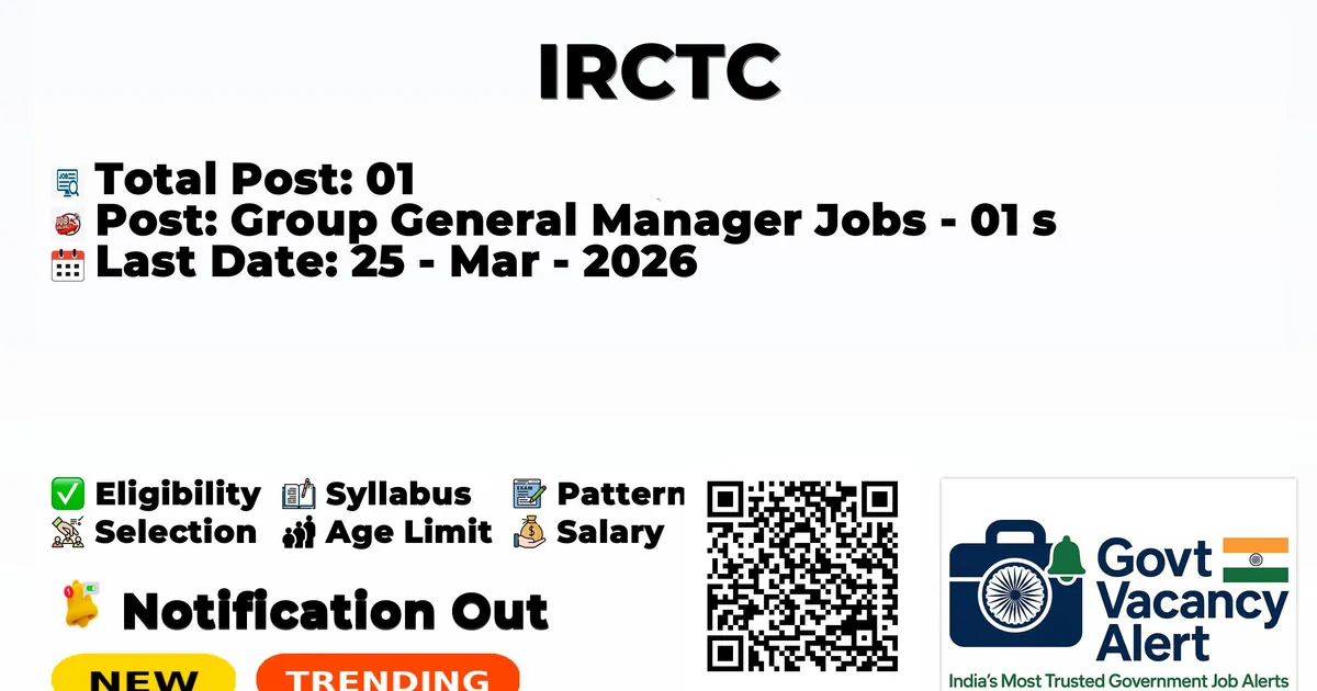 Indian Railway Catering and Tourism Corporation (IRCTC) has announced the official notification for 2026. To fill up the vacancies for various Group General Manager Jobs. Candidates who have completed any degree can use this chance and apply for the IRCTC Recruitment 2026. Interested candidates can apply on or before the last date of application.