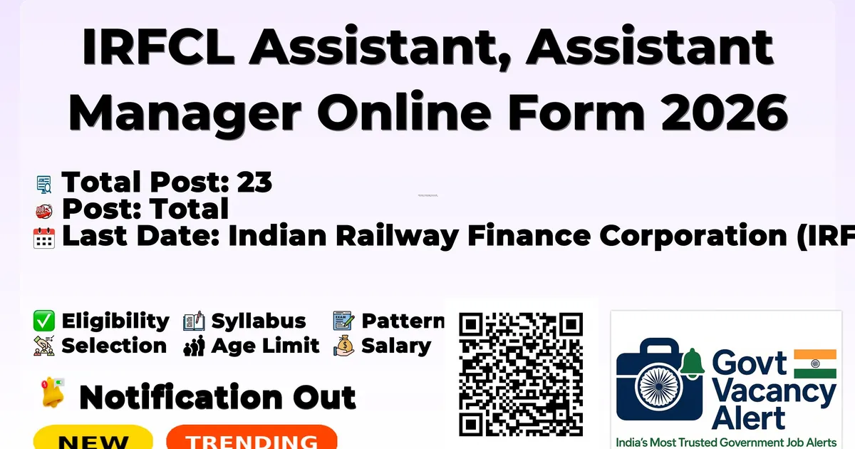 | Indian Railway Finance Corporation (IRFCL) Advt No 01/2026 Assistant, Assistant Manager Vacancy 2026 | |