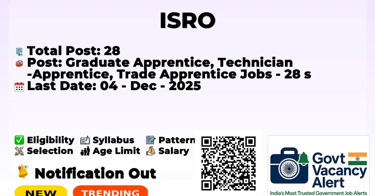 The Space Applications Centre (ISRO SAC) has declared the official notification for 2025. To fill up the vacancies for 28 Graduate Apprentices, Technician Apprentices, and Trade Apprentices. Those candidates who have qualified in the B.E./ B.Tech, Diploma in Electrical Engineering, Civil Engineering, Civil Engineering, 10th Pass, ITI can grab this chance and apply for the ISRO SAC Recruitment 2025. Here, we include the age limit, selection process, salary structure, education details, application fee, and how to apply for these posts. Interested candidates can apply online before the last date of application.