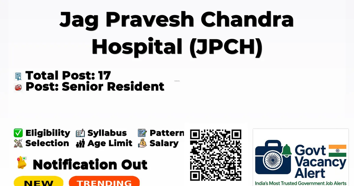 Jag Pravesh Chandra Hospital (JPC Hospital) Recruitment 2026 for 17 posts of Senior Resident. Candidates with MBBS, Diploma, DNB, Any Post Graduate Can attend the walkin. The Walk-in on 23-01-2026. For detailed information please visit JPC Hospital official website, health.delhi.gov.in.