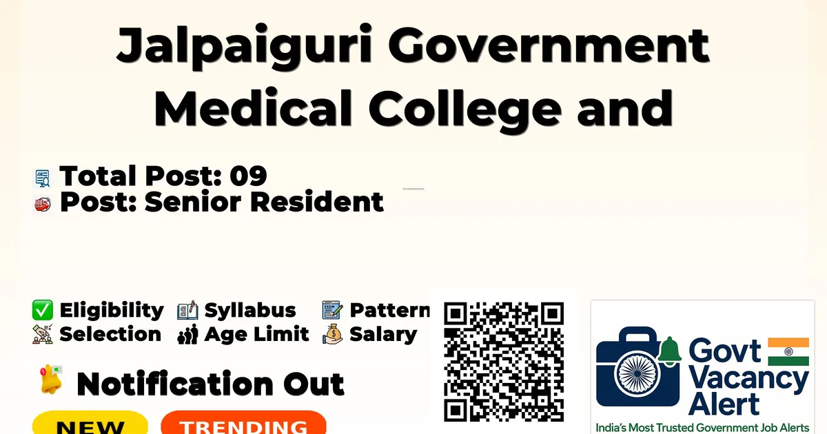 Jalpaiguri Government Medical College and Hospital Recruitment 2025 for 09 posts of Senior Resident. Candidates with MS/MD Can attend the walkin. The Walk-in interview on 01-12-2025. For detailed information please visit Jalpaiguri Government Medical College and Hospital official website, wbhealth.gov.in.