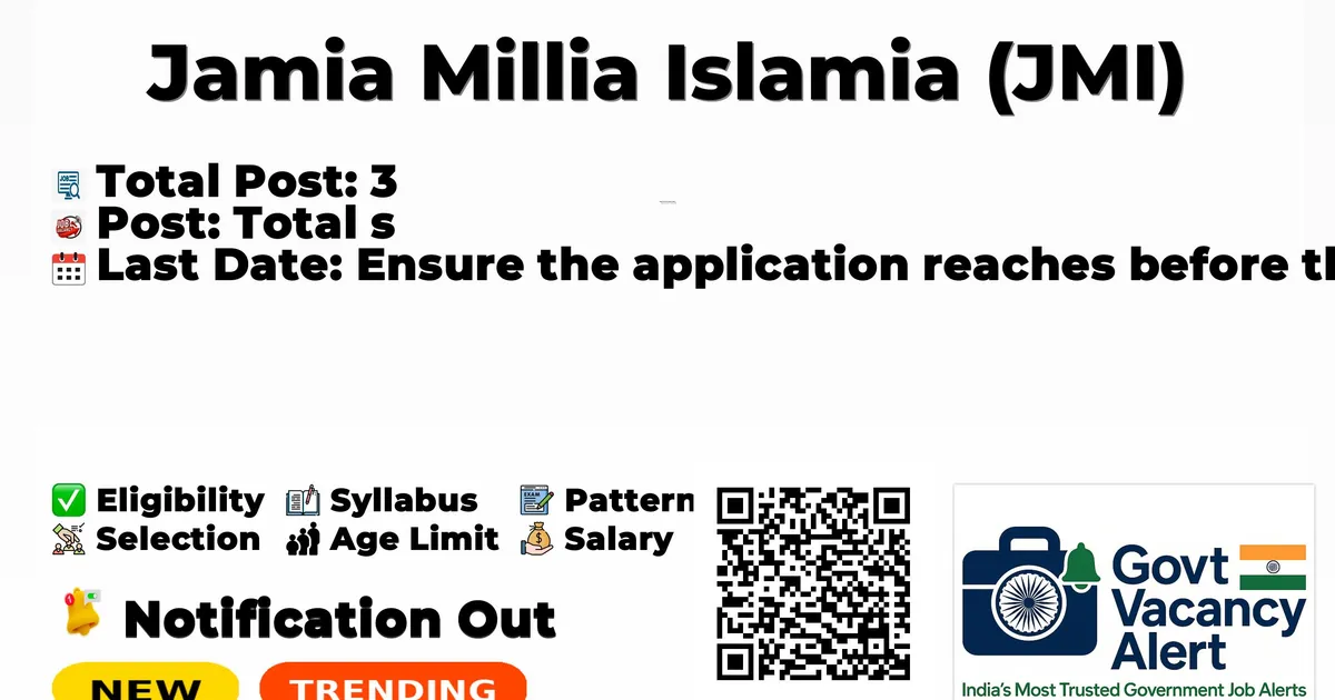 Candidates should download and read the JMI Jobs 2026 notification PDF carefully to check vacancy details, eligibility, age limit, and application instructions. The notification also includes important dates and selection process details. The direct download link is available in the Important Links section below.