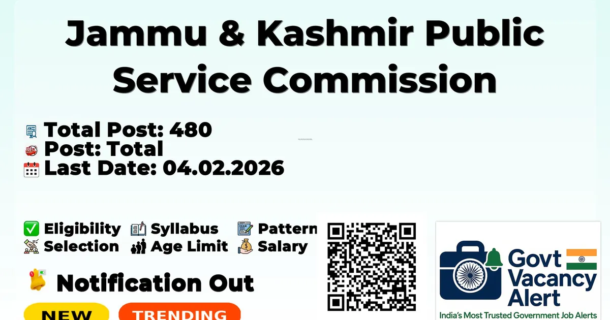 Jammu and Kashmir Public Service Commission (JKPSC) has released an official notification for the recruitment of 480 Medical Officer Posts. Interested and eligible candidates can apply Online through the official JKPSC website. The last date to submit the application form is 04-02-2026. In this article, you’ll find the JKPSC Medical Officer Posts recruitment details, including eligibility criteria, age limit, salary structure, selection process, application steps, and direct links to the official notification and Online application form.