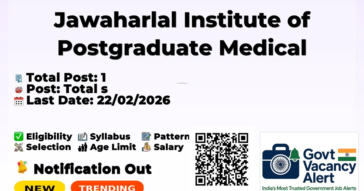 Jawaharlal Institute of Postgraduate Medical Education and Research (JIPMER) has released an official notification for the recruitment of 01 Project Technical Support III Posts. Interested and eligible candidates can apply Online through the official JIPMER website. The last date to submit the application form is 22-02-2026. In this article, you’ll find the JIPMER Project Technical Support III Posts recruitment details, including eligibility criteria, age limit, salary structure, selection process, application steps, and direct links to the official notification and Online application form.