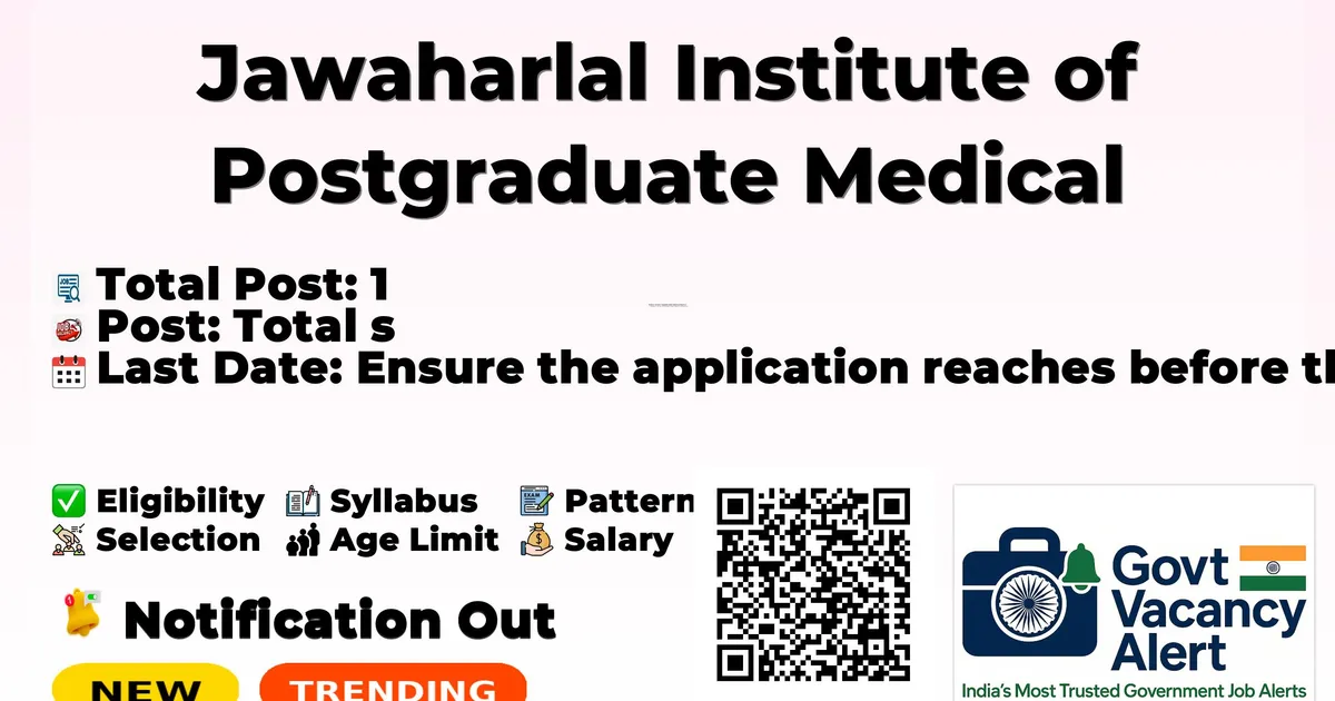 Company Name Jawaharlal Institute of Postgraduate Medical Education and Research (JIPMER) Post Name Technician No of Posts 1 Advt No JIPMER/SD/BHTSHM/HR/25-26(1) Salary Rs. 40,000 per month consolidated Qualification B.Sc Notification Date 11-02-2026 Last Date 25-02-2026 Website https://jipmer.edu.in