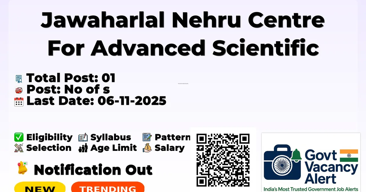 Jawaharlal Nehru Centre For Advanced Scientific Research (JNCASR) has released an official notification for the recruitment of 01 Workshop Assistant Posts. Interested and eligible candidates can apply Offline through the official JNCASR website. The last date to submit the application form is 06-11-2025. In this article, you’ll find the JNCASR Workshop Assistant Posts recruitment details, including eligibility criteria, age limit, salary structure, selection process, application steps, and direct links to the official notification and Offline application form.