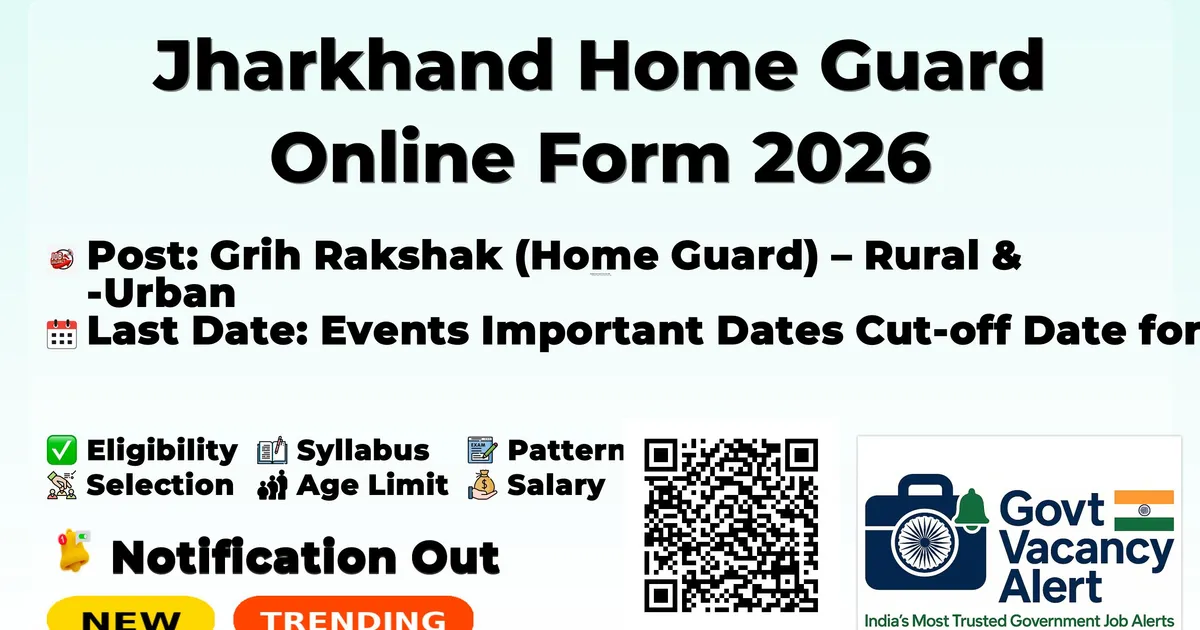Particulars Details Recruitment Name Jharkhand Home Guard Deoghar Recruitment 2026 Organisation Jharkhand Grih Raksha Vahini, Deoghar Post Name Grih Rakshak (Home Guard) – Rural & Urban Total Vacancies 772 Nature of Engagement Voluntary (Honorarium as per government rate per duty day) Essential Qualification Rural: Minimum 7th Pass Urban: Minimum Matric (10th) Pass Age Limit 19–40 years (as on 01.01.2026) Application Mode Online only (through JAP-IT portal) Application Fee ₹200/- (Non-refundable)