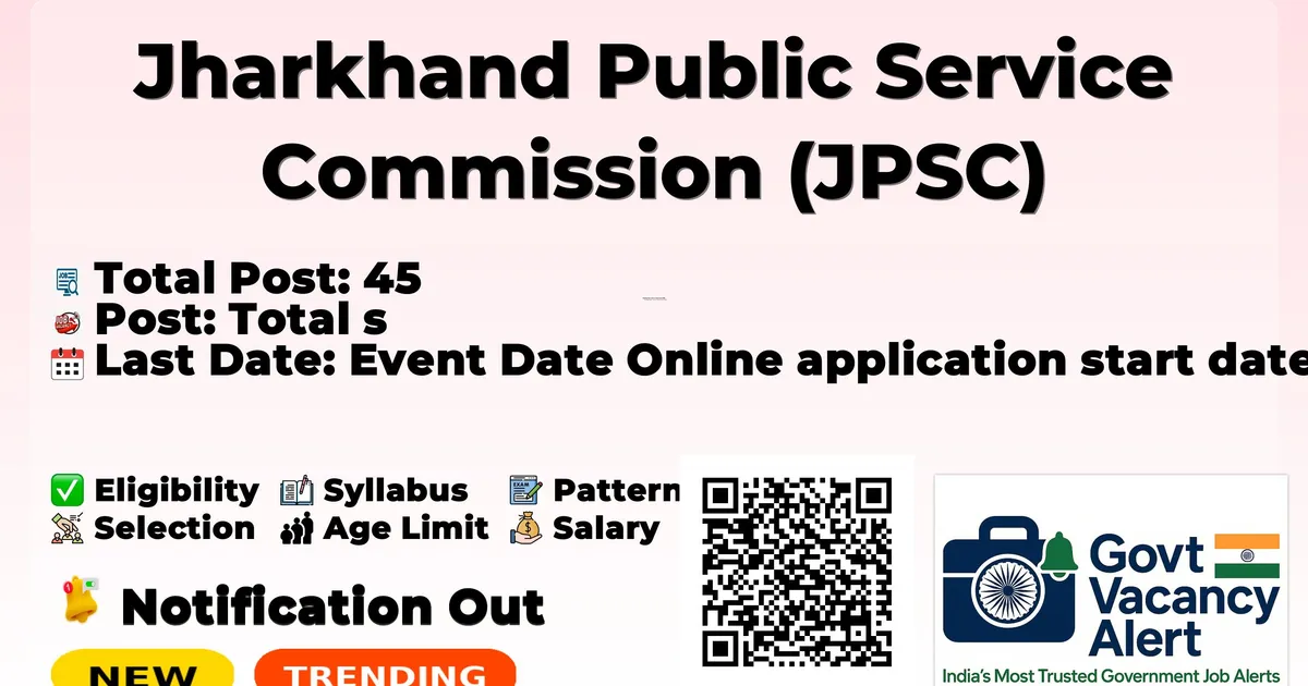 Jharkhand Public Service Commission (JPSC) Deputy Collector Notification 2026 has been released on 19 March 2026 on the official website jpsc.gov.in. A total of 45 vacancies have been announced through the JPSC Deputy Collector Recruitment 2026 under Advertisement No. 05/2026. FreeJobAlert - Your Personal Govt Job Finder 10M+Users 100+Jobs/day FreeAlways ⚡ Get Custom Govt Job Alerts - Alerts by Qualification, State and Interest. Get Free Alerts ● Free · No spam · Unsubscribe anytime · freejobalert.com Candidates aged between 21 and 37 years (UR male) who possess a Bachelor’s degree from a recognized University are eligible to apply for these Deputy Collector and other posts. The online application process for JPSC Recruitment 2026 has started on 21 March 2026 and will remain open until 06 April 2026. Candidates can download the official notification PDF and apply online through the direct links provided below in this article. Advertisement Company Name Jharkhand Public Service Commission (JPSC) Post Name Deputy Collector No of Posts 45 Advt No 05/2026 Salary 9300-34800 Grade Pay 5400 Qualification Bachelor’s degree from any University incorporated by an Act of Central/State Legislature in India or equivalent qualification recognized by Central Government. Age Limit Min: 21 years, Max: 37 years (UR Male), 38 years (Female EBC/BC), 40 years (SC/ST Male/Female). Relaxation applicable. Last Date 06-04-2026 Apply Mode Online Job Type Full Time Candidates who are interested in applying for the JPSC Recruitment 2026 should first download and carefully read the official notification PDF. The notification contains complete details about vacancy distribution, eligibility criteria, age limit, stipend/salary, selection process, important dates, and application instructions. Reading the official document is important to ensure that you meet all requirements before submitting the application form. Download JPSC Job 2026 Notification PDF Post Name Total Posts Deputy Collector (Personnel, Administrative Reforms and Official Language Department) 36 Assistant Registrar (Animal Husbandry, Dairy and Cooperative Department) (Cooperative Division) 2 Jharkhand Education Service Category-2 (Original Quota) School Education and Literacy Department 7 Total 45 Bachelor’s degree from any University incorporated by an Act of Central/State Legislature in India or equivalent qualification recognized by Central Government. Category Fee Extremely Backward Class (Annexure-I) / Backward Class (Annexure-II) Rs. 100 Scheduled Tribes / Scheduled Castes / Primitive Tribe Rs. 50 Divyang (40% disability) Exempt Minimum Age: 21 years Maximum Age: 37 years (UR Male) Maximum Age: 38 years (Female EBC/BC) Maximum Age: 40 years (SC/ST Male/Female) Age relaxation is applicable as per government rules. Salary: 9300-34800 Grade Pay 5400 Event Date Online application start date 21 March 2026 Last date to submit online application 06 April 2026 Last date for fee payment 06 April 2026 Preliminary Examination Main Written Examination Interview / Personality Test Candidates who meet the eligibility criteria can apply online for the JPSC Various Posts Recruitment 2026. Applications must be submitted online on or before 06-04-2026. To apply directly, use the Apply Online link provided in the Important Links section. Alternatively, candidates may visit the official website of JPSC to complete the application. Fill out the application form carefully with correct personal, educational, and contact details. Upload required documents such as photograph, signature, and certificates in the prescribed format. Pay the application fee online, if applicable. Review all details carefully before submitting the form. Take a printout or save a copy of the submitted application for future reference. Link Description Link Official Notification PDF Click here Apply Online Click here Official Website Click here FreeJobAlert - Your Personal Govt Job Finder 10M+Users 100+Jobs/day FreeAlways ⚡ Get Custom Govt Job Alerts - Alerts by Qualification, State and Interest. Get Free Alerts ● Free · No spam · Unsubscribe anytime · freejobalert.com
