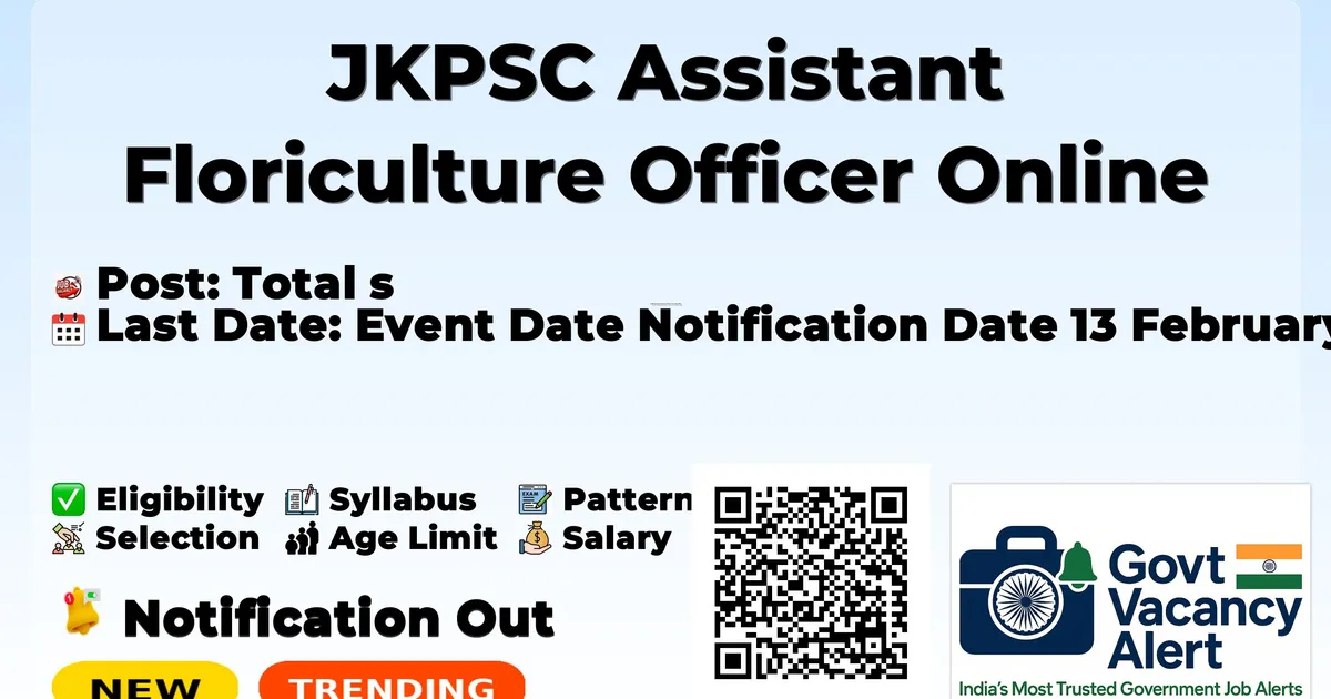 Jammu and Kashmir Public Service Commission (JKPSC) has released an official notification for the recruitment of 02 Assistant Floriculture Officer Posts. Interested and eligible candidates can apply Online through the official JKPSC website. The last date to submit the application form is 17-03-2026. In this article, you’ll find the JKPSC Assistant Floriculture Officer Posts recruitment details, including eligibility criteria, age limit, salary structure, selection process, application steps, and direct links to the official notification and Online application form.