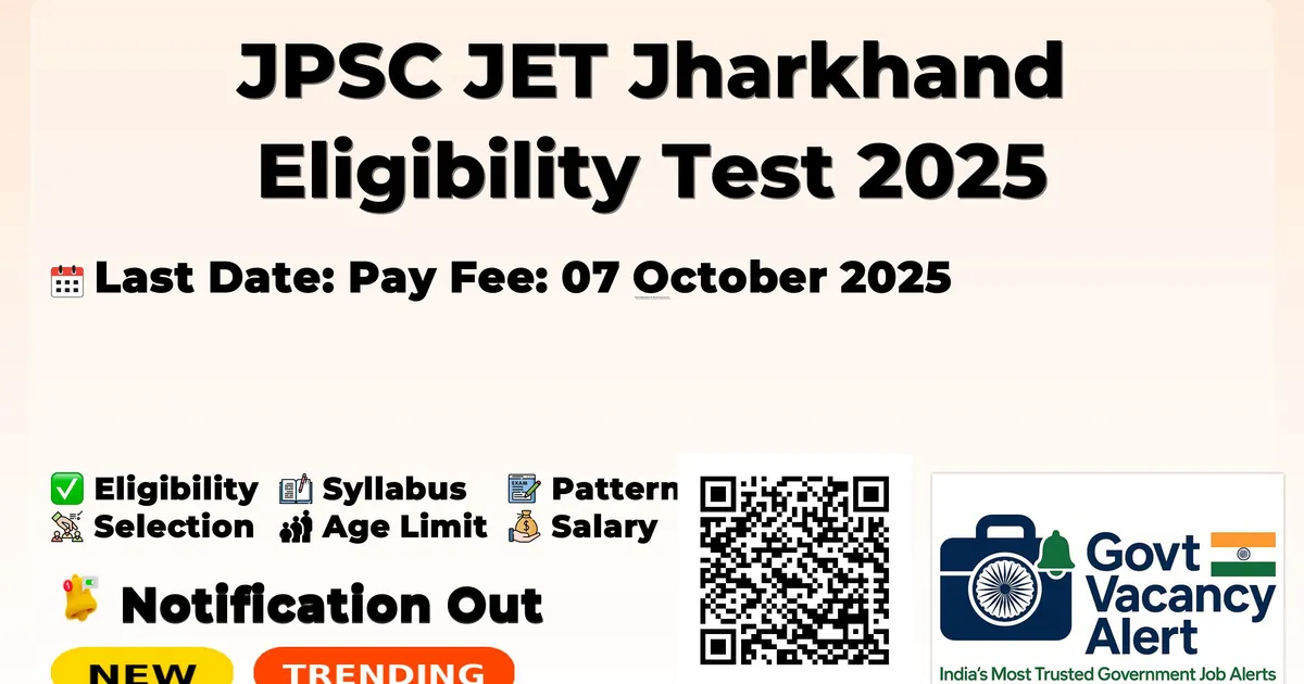JPSC JET Jharkhand Eligibility Test 2025 Notification Online Form — Latest Government Job