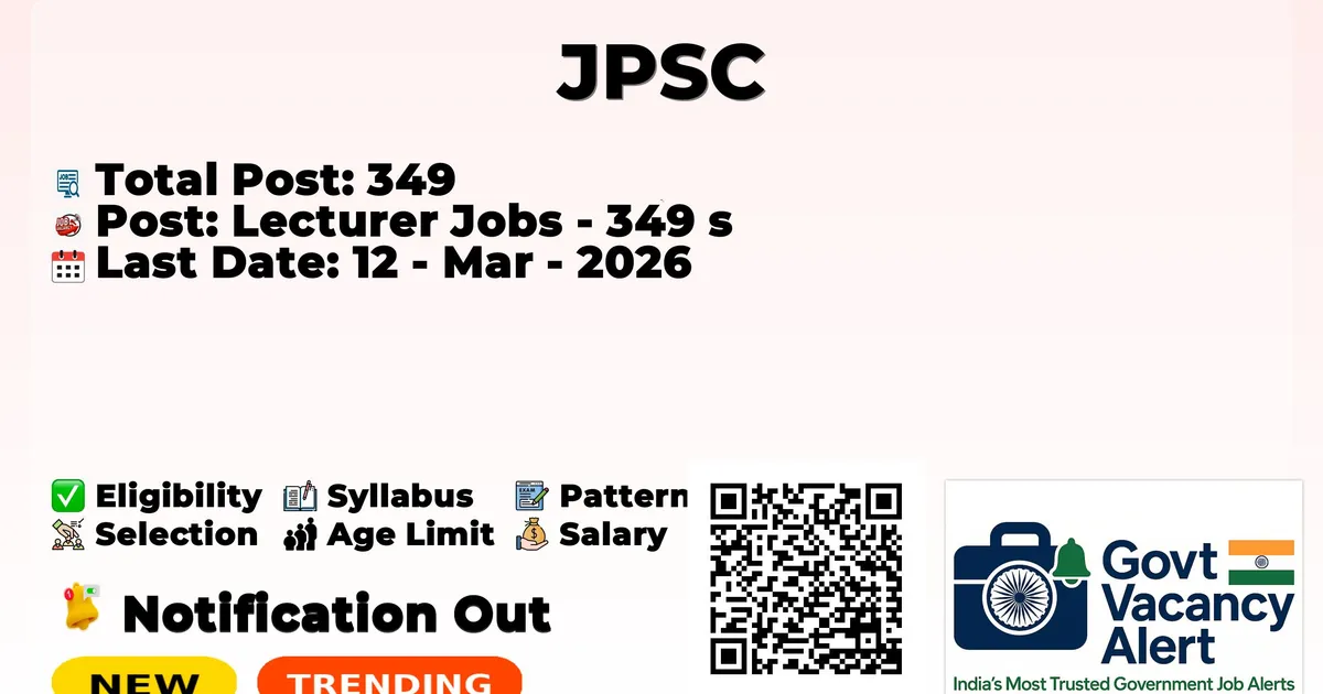 The Jharkhand Public Service Commission (JPSC) has officially released the notification to fill the vacancies of 349 Lecturer Posts. Interested and eligibile candidates can use this opportunity to apply for these posts before the last date of application. Candidates who have completed their B.E./B. Tech, M.E./M. Tech in Electrical, Mechanical, and Civil Engineering can apply for the JPSC Notification 2026. The interested applicants can apply in online mode. Here we have mentioned the education details, age limit, selection process, application fee, salary, and how to apply for these posts before the deadline. The application dates have already begun.