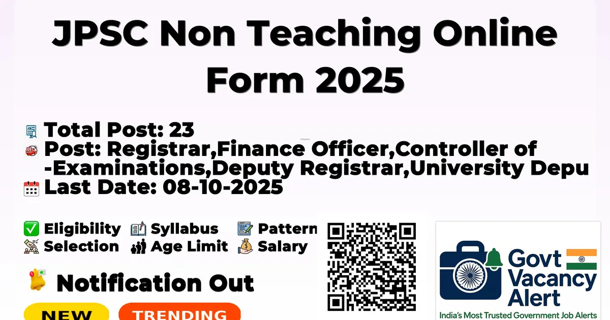 The Jharkhand Public Service Commission (JPSC) Recruitment 2025 for 23 posts of Non Teaching. Candidates with Any Masters Degree, M.Phil/Ph.D Can Apply Online. The online application opens on 18-09-2025, and closes on 08-10-2025. The candidate shall apply online through JPSC website, jpsc.gov.in.