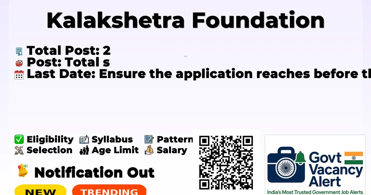 Candidates should download and read the Kalakshetra Foundation Jobs 2026 notification PDF carefully to check vacancy details, eligibility, age limit, and application instructions. The notification also includes important dates and selection process details. The direct download link is available in the Important Links section below.