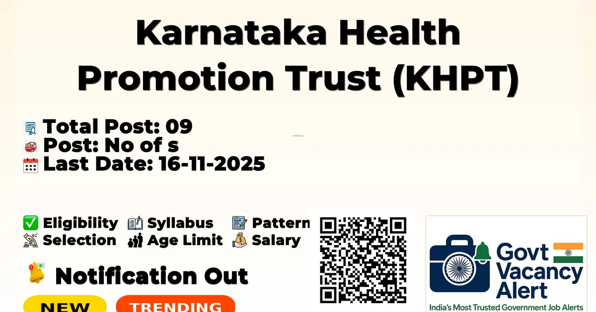 Karnataka Health Promotion Trust (KHPT) has released an official notification for the recruitment of 09 Taluka Coordinator, District Lead and More Posts. Interested and eligible candidates can apply Online through the official KHPT website. The last date to submit the application form is 16-11-2025. In this article, you’ll find the KHPT Taluka Coordinator, District Lead and More Posts recruitment details, including eligibility criteria, age limit, salary structure, selection process, application steps, and direct links to the official notification and Online application form.