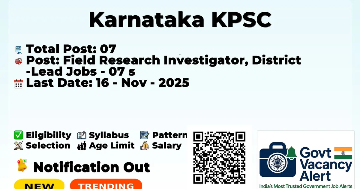 Karnataka KPSC — Field Research Investigator, District Lead Jobs - 07 Posts