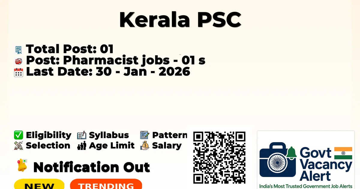 The Kerala Veterinary and Animal Sciences University (KVASU) has officially released the notification to fill the vacancies of 01 Pharmacist Posts. Interested and eligibile candidates can use this opportunity to apply for these posts before the last date of application. Candidates who have completed their D. Pharm can apply for the KVASU Notification 2026. The interested applicants can attend the walk-in interview. Here we have mentioned the education details, age limit, selection process, application fee, salary, and how to apply for these posts before the deadline. The application dates have already begun.