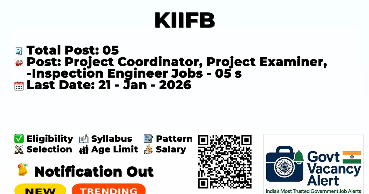 The Kerala Infrastructure Investment Fund Board (KIIFB) has officially released the notification to fill the vacancies of 05 Project Coordinators, Project Examiners, and Inspection Engineers. Interested and eligibile can use this opportunity to apply for these posts before the last date of application. Candidates who have completed their B.E./B. Tech in Electrical and Civil Engineering can apply for the KIIFB Notification 2026. The interested applicants can apply in online mode. Here we have mentioned the education details, age limit, selection process, application fee, salary, and how to apply for these posts before the deadline. The application dates have already begun.