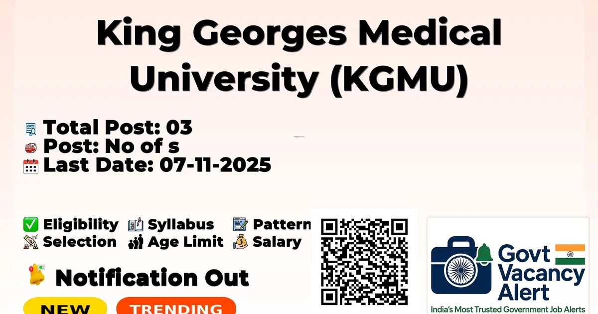 King Georges Medical University (KGMU) has released an official notification for the recruitment of 03 Project Nurse II, Data Entry Operator Posts. Interested and eligible candidates can apply Offline through the official KGMU website. The last date to submit the application form is 07-11-2025. In this article, you’ll find the KGMU Project Nurse II, Data Entry Operator Posts recruitment details, including eligibility criteria, age limit, salary structure, selection process, application steps, and direct links to the official notification and Offline application form. Join Our Arattai Channel: Join Here Advertisement Company Name King Georges Medical University (KGMU) Post Name Project Nurse II, Data Entry Operator No of Posts 03 Pay Matrix Rs.24000 - 29200 Qualification Graduate, GNM Last Date for Apply 07-11-2025 Official Website kgmu.org Post Name No of Posts Project Nurse II 02 Data Entry Operator 01 Project Nurse II: Minimum second class or equivalent CGPA three-year General Nursing and Mid Wife (GNM) course Data Entry Operator: Graduate with knowledge of data entry work Maximum Age limit: 30 Years Age relaxation is applicable as per rules. Last Date for Apply: 07-11-2025 Interested candidates with requisite qualifications and experience may submit duly filled application on prescribed format along with CV at [email protected] on or before 7/11/2025 (Friday). No hard copy will be entertained. Shortlisted candidates will be informed by e-mail in advance and required to appear in interview. The interview is scheduled to be held on 10 November 2025 at 12.00 p.m. in the office of undersigned. No separate call letter will be dispatched for interview. Official Notification PDF: Click here Official Website: Click here Join Arattai Channel: Click Here Join Telegram Channel: Click Here Join WhatsApp Channel: Click Here Download Mobile App: Click Here Jobs In Uttar Pradesh Agra Aligarh Allahabad Ambedkar Nagar Auraiya Azamgarh Baghpat Bahraich Ballia Balrampur Banda Barabanki Bareilly Basti Bijnor Budaun Bulandshahar Chandauli Chitrakoot Deoria Etah Etawah Faizabad Farrukhabad Fatehpur Firozabad Gautam Buddha Nagar Ghaziabad Ghazipur Gonda Gorakhpur Hamirpur Uttar Pradesh Hardoi Hathras Jalaun Jaunpur Jhansi Jyotiba Phule Nagar Kannauj Kanpur Kanshiram Nagar Kaushambi Kheri Kushinagar Lalitpur Lucknow Mahamaya Nagar Maharajganj Mahoba Mainpuri Mathura Mau Meerut Mirzapur Moradabad Muzaffarnagar Noida Pilibhit Pratapgarh Rae Bareli Ramabai Nagar Rampur Saharanpur Sant Kabir Nagar Sant Ravidas Nagar Shahjahanpur Shrawasti Siddharth Nagar Sitapur Sonbhadra Sultanpur Unnao Varanasi Also Read SEBI Recruitment 2025 - Officer Grade A (Assistant Manager) Vacancies - Rs 62500 to 126100 Salary - Apply Now Intelligence Bureau ACIO II Tech Recruitment 2025 - 200+ Vacancies Across India - 44900-142400 Salary - Apply Now RRB Recruitment 2025 - 2500+ JE (Junior Engineer) Vacancies - 35400 Monthly Salary - Apply Now Jobs By Education 10TH Jobs› 8TH Jobs› 12TH Jobs› Diploma Jobs› ITI Jobs› B.Tech/B.E Jobs› B.com Jobs› Any Graduate Jobs› Any Post Graduate Jobs› New Updates RRB NTPC 5,810 Online Form 2025 Territorial Army 1529 Soldier Offline Form 2025 SEBI Officer Grade A Online Form 2025 RRB 2569 JE (Junior Engineer) Online Form 2025 Intelligence Bureau (IB) ACIO II Tech Online Form 2025 RRB NTPC 8850 Online Form 2025-26 Bihar CSBC 4128 Constable Online Form 2025 RPF Constable Result 2025 INI CET 2025 Admit Card Out Today View All Territorial Army 1529 Soldier Offline Form 2025 RRB 2569 JE (Junior Engineer) Online Form 2025 RRB NTPC 12TH Level Online Form 2025 3058 Post BRO 542 MSW, Vehicle Mechanic Offline Form 2025 RITES 600 Senior Technical Assistant Online Form 2025 ISRO SDSC SHAR Various Vacancy Online Form 2025 SECL 543 Assistant Foreman Online Form 2025 ONGC 2623 Apprentices Online Form 2025 Delhi DDA Recruitment 2025 Online Form Out For 1732 Post 1. What is the last apply date for KGMU Project Nurse II, Data Entry Operator 2025? Ans: Last apply date is 07-11-2025. 2. What is the Eligibility to apply for KGMU Project Nurse II, Data Entry Operator 2025? Ans: Graduate, GNM 3. How many vacancies are being recruited by KGMU Project Nurse II, Data Entry Operator 2025? Ans: Total 03 Vacancies.