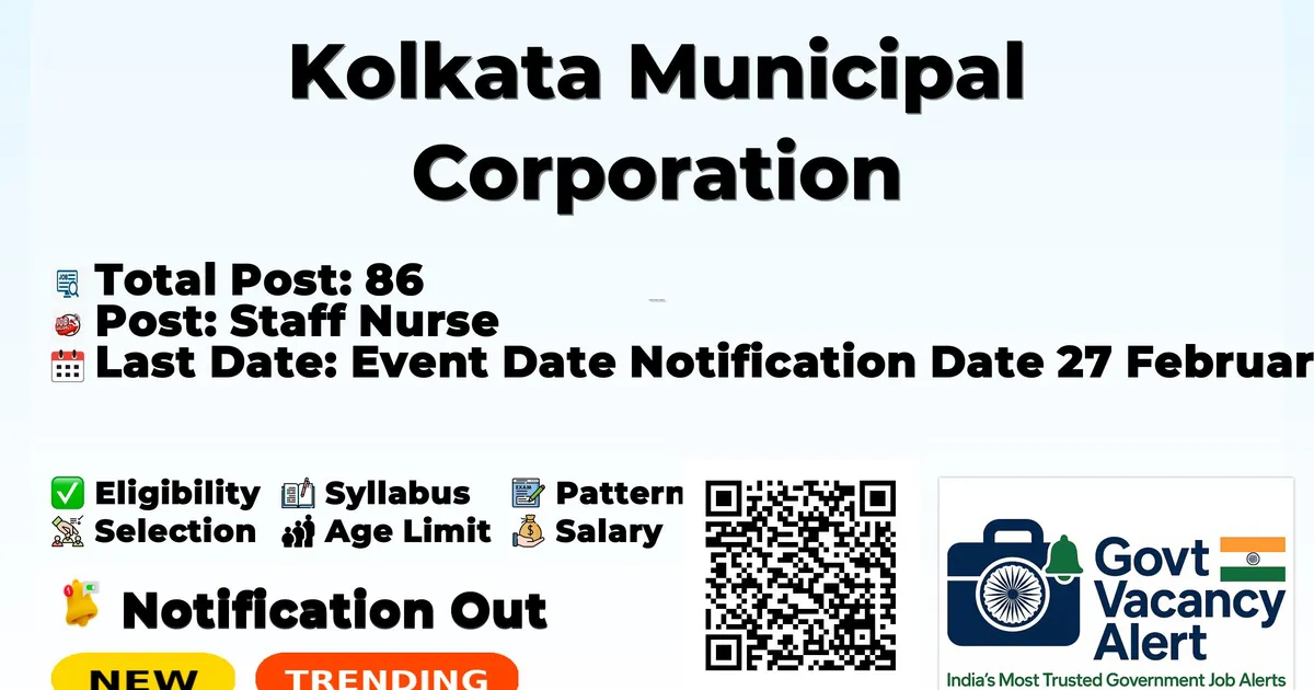 Kolkata Municipal Corporation has released an official notification for the recruitment of 86 Staff Nurse Posts. Interested and eligible candidates can apply Online through the official Kolkata Municipal Corporation website. The last date to submit the application form is 25-03-2026.
