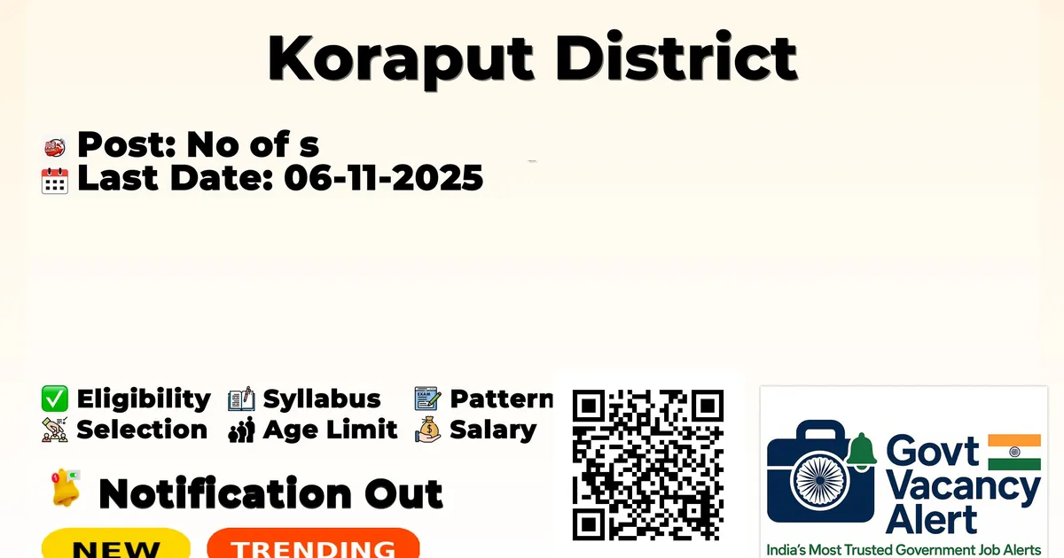 Koraput District has released an official notification for the recruitment of Guest Faculty Posts. Interested and eligible candidates can apply Offline through the official Koraput District website. The last date to submit the application form is 06-11-2025. In this article, you’ll find the Koraput District Guest Faculty Posts recruitment details, including eligibility criteria, age limit, salary structure, selection process, application steps, and direct links to the official notification and Offline application form.