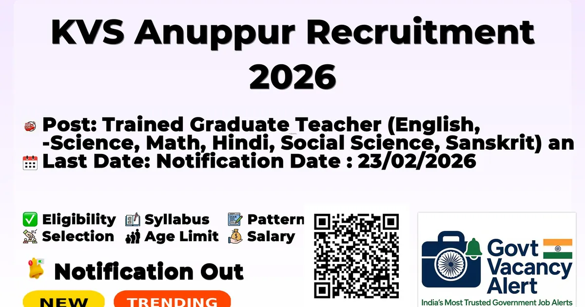 Interested candidates aged 18 to 65 years should download the application form from the ‘School Update’ section of the school website anuppur.kvs.ac.in, fill it completely, and appear at the school for the interview at 9 AM on the above-mentioned dates. Get the documents verified by the committee before the interview. To ensure your eligibility, review the recruitment rules given by the organization on the website, and only then submit the self-attested copy of the application and related documents.